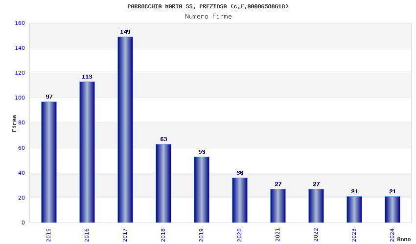 | Anno | Firme | Importi | Media | Naz. | Reg. | Prov. | Comu. |