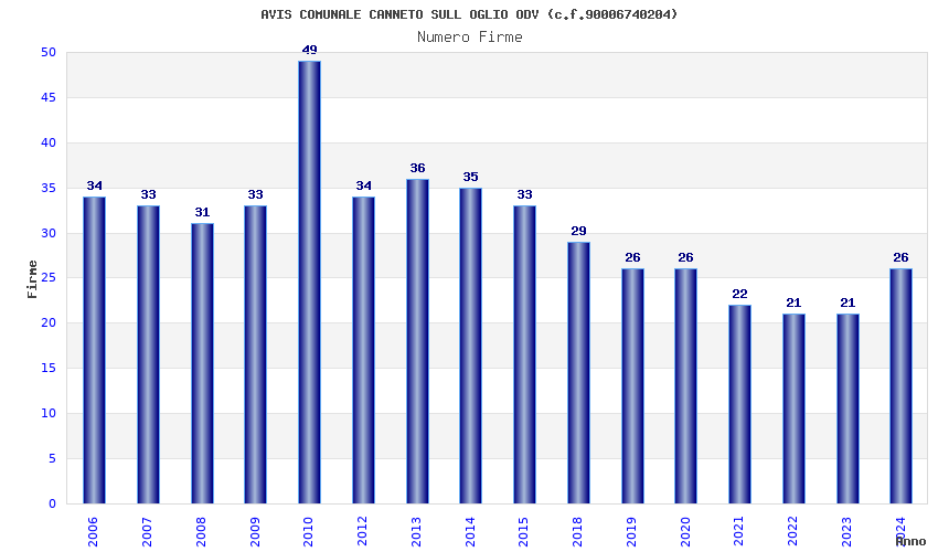 Anno Firme Importi Media Naz. Reg. Prov. Comu.