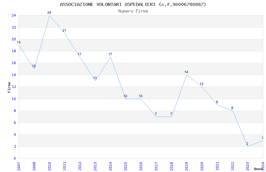 | 2019 | 14 | 345,45 | 24,68 | 50.190 | 2.872 | 156 | 9 |