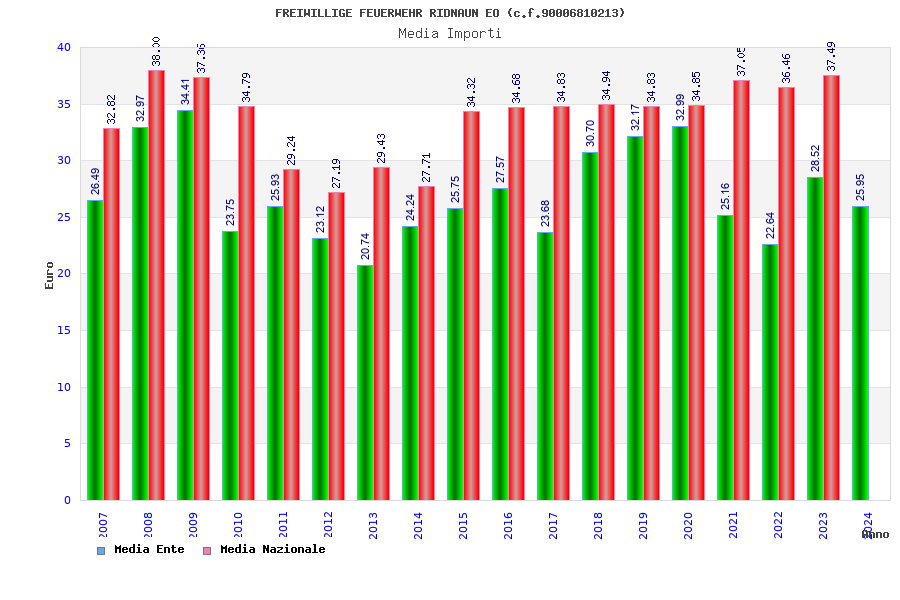 | Anno | Firme | Importi | Media | Naz. | Reg. | Prov. | Comu. |