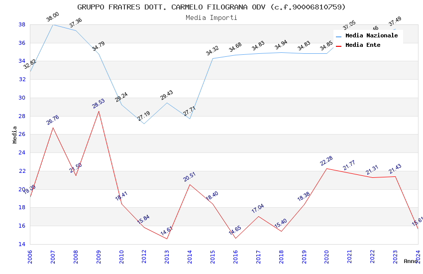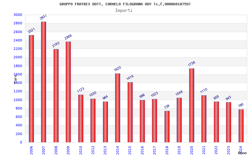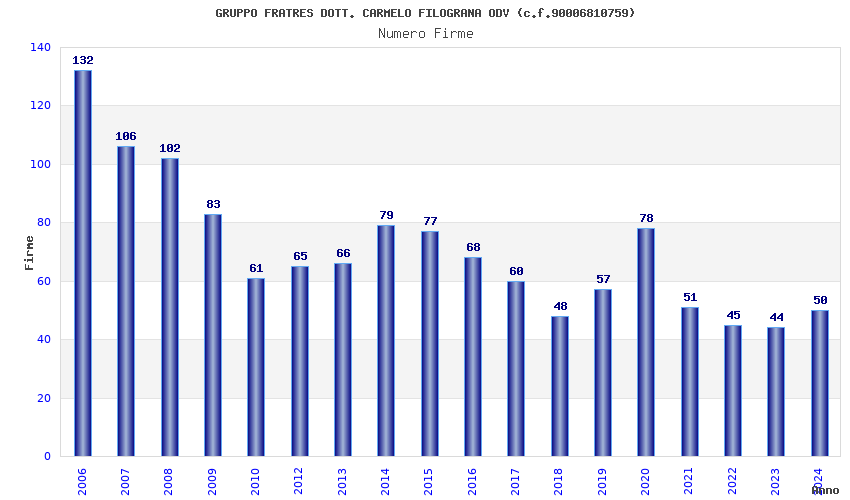 | Anno | Firme | Importi | Media | Naz. | Reg. | Prov. | Comu. |