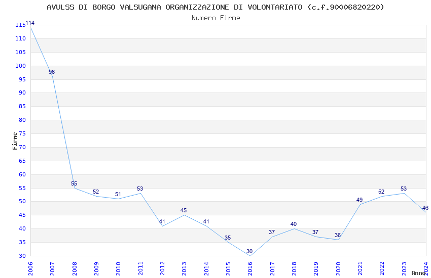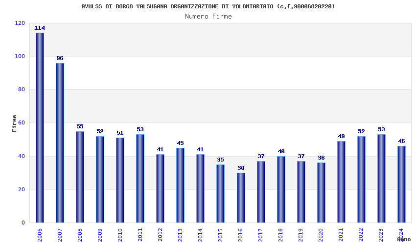 | 2006 | 114 | 2.187,11 | 19,19 | 14.379 | 389 | 203 | 4 |