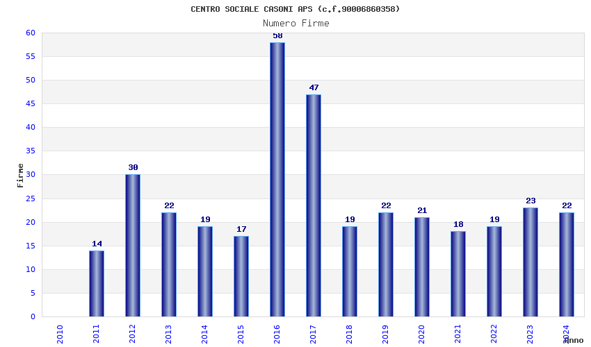 Anno Firme Importi Media Naz. Reg. Prov. Comu.