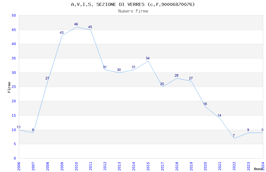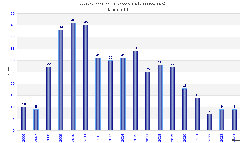 Anno Firme Importi Media Naz. Reg. Prov. Comu.