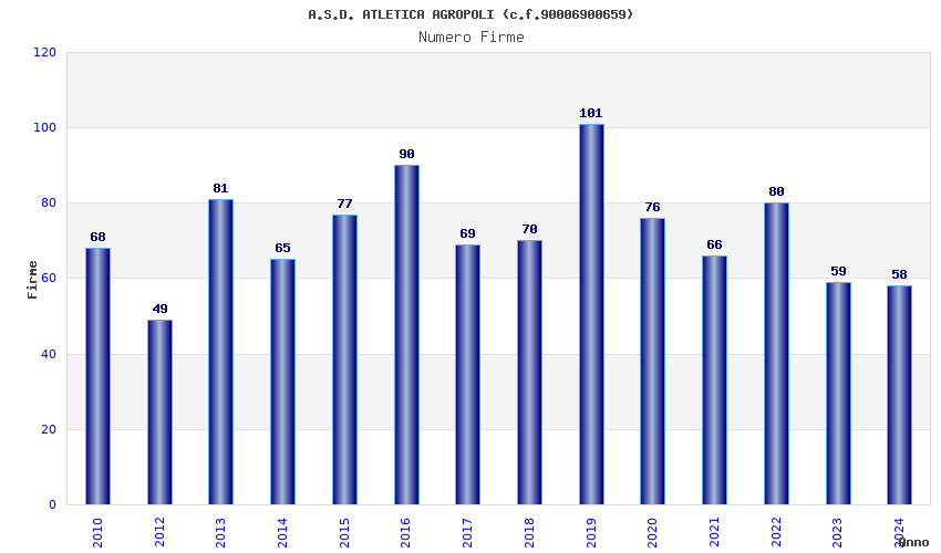 | 2019 | 101 | 3.091,14 | 30,61 | 17.238 | 1.011 | 211 | 5 |