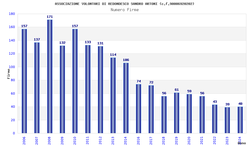 | Anno | Firme | Importi | Media | Naz. | Reg. | Prov. | Comu. |