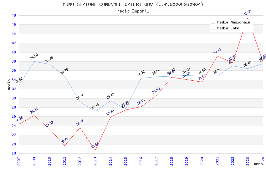 | Anno | Firme | Importi | Media | Naz. | Reg. | Prov. | Comu. |