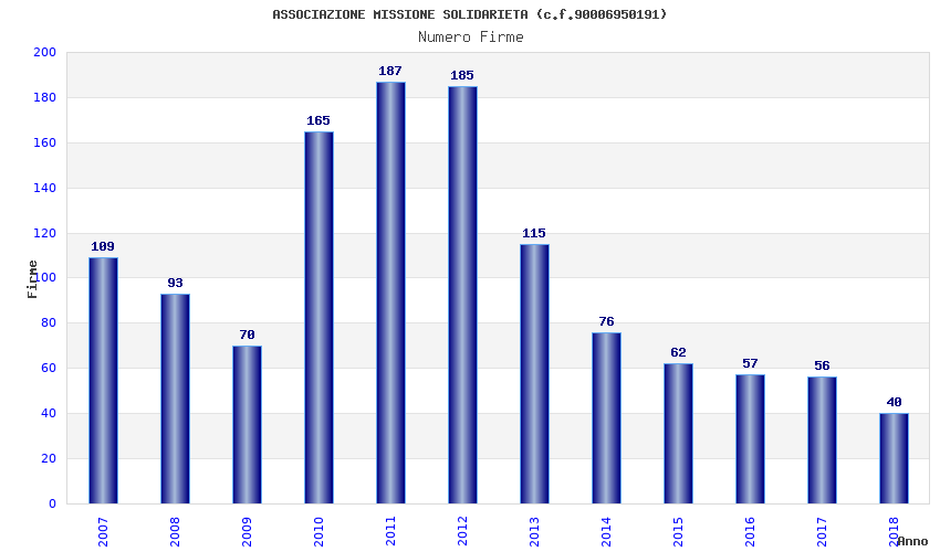 | Anno | Firme | Importi | Media | Naz. | Reg. | Prov. | Comu. |