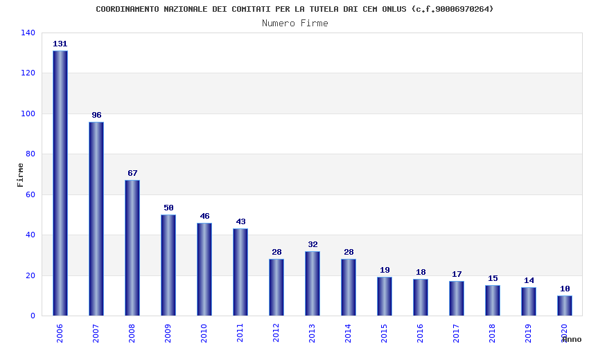 | Anno | Firme | Importi | Media | Naz. | Reg. | Prov. | Comu. |