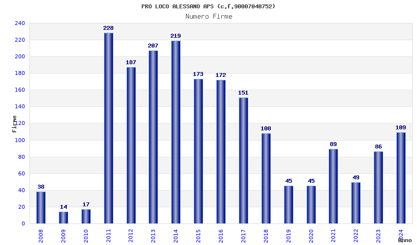 | Anno | Firme | Importi | Media | Naz. | Reg. | Prov. | Comu. |
