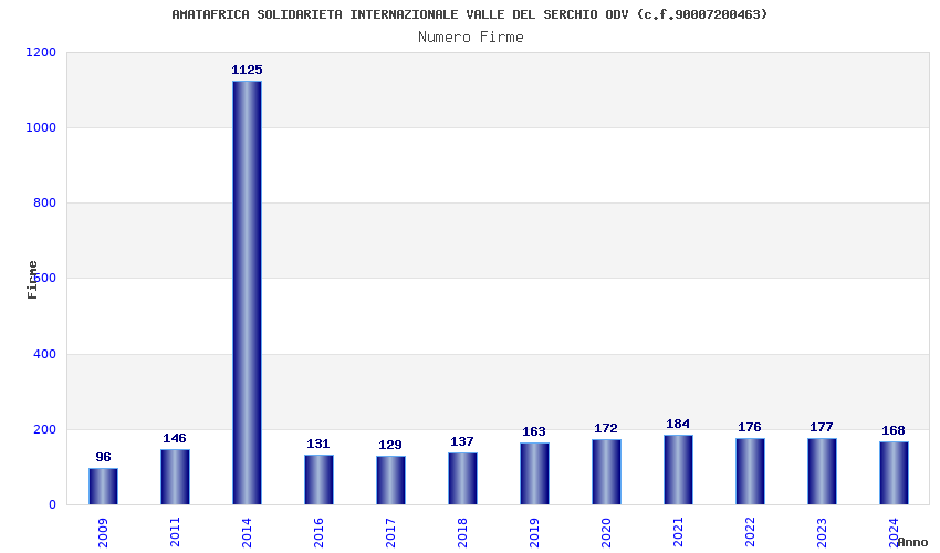 | Anno | Firme | Importi | Media | Naz. | Reg. | Prov. | Comu. |