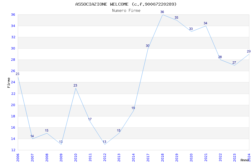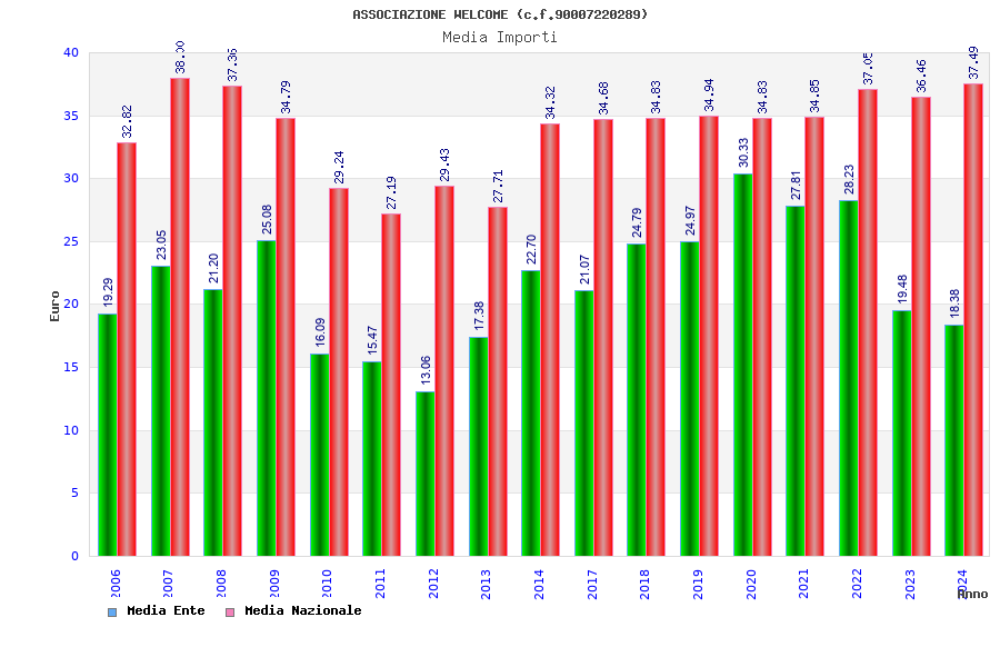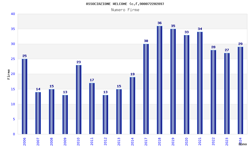 | Anno | Firme | Importi | Media | Naz. | Reg. | Prov. | Comu. |