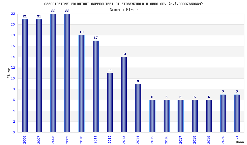 | Anno | Firme | Importi | Media | Naz. | Reg. | Prov. | Comu. |
