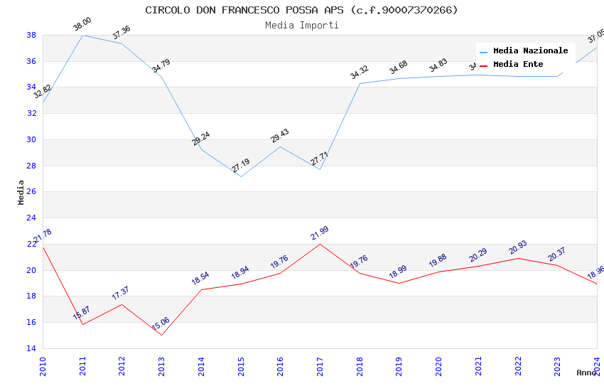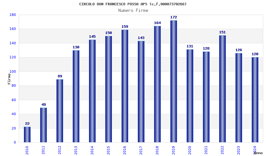 | Anno | Firme | Importi | Media | Naz. | Reg. | Prov. | Comu. |