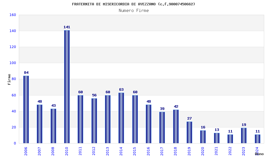 | Anno | Firme | Importi | Media | Naz. | Reg. | Prov. | Comu. |