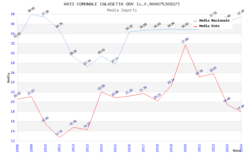 | Anno | Firme | Importi | Media | Naz. | Reg. | Prov. | Comu. |