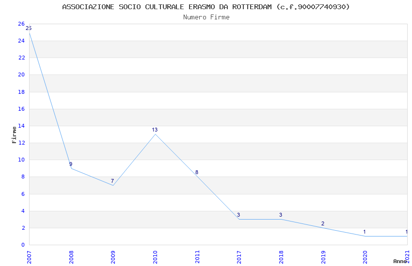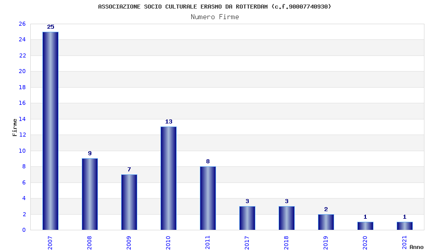 | Anno | Firme | Importi | Media | Naz. | Reg. | Prov. | Comu. |