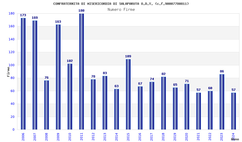 | Anno | Firme | Importi | Media | Naz. | Reg. | Prov. | Comu. |