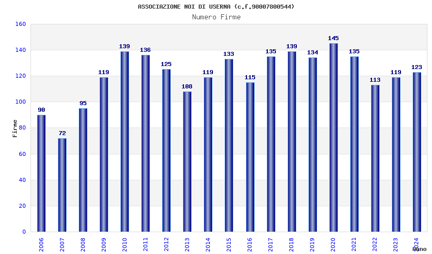 | 2020 | 145 | 3.347,30 | 23,08 | 16.422 | 224 | 181 | 11 |