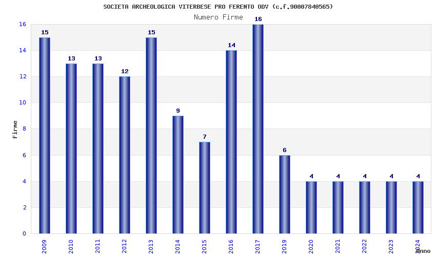 | Anno | Firme | Importi | Media | Naz. | Reg. | Prov. | Comu. |