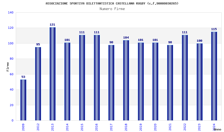 | 2013 | 121 | 3.238,09 | 26,76 | 12.862 | 1.233 | 192 | 11 |