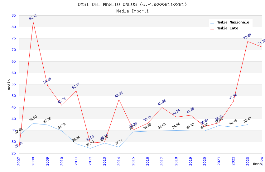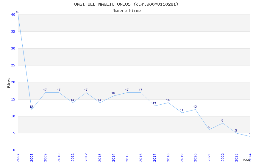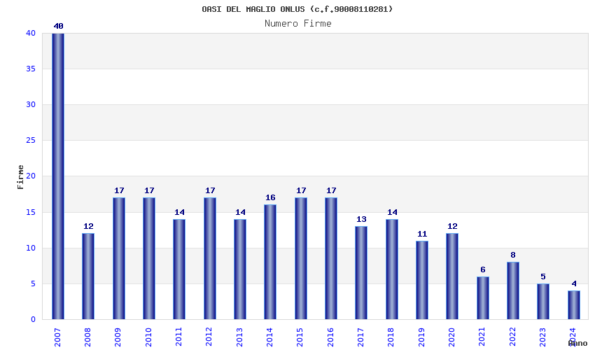 | Anno | Firme | Importi | Media | Naz. | Reg. | Prov. | Comu. |
