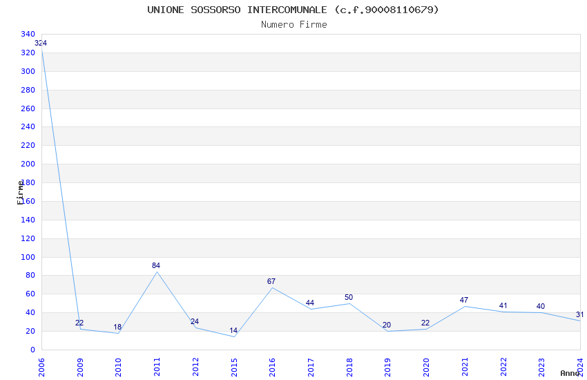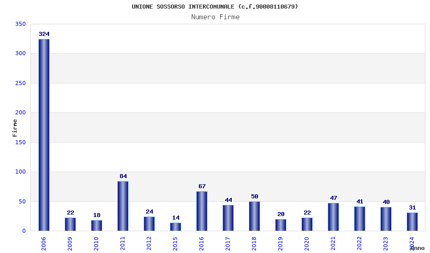 | Anno | Firme | Importi | Media | Naz. | Reg. | Prov. | Comu. |