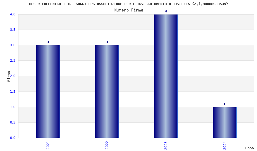 | Anno | Firme | Importi | Media | Naz. | Reg. | Prov. | Comu. |