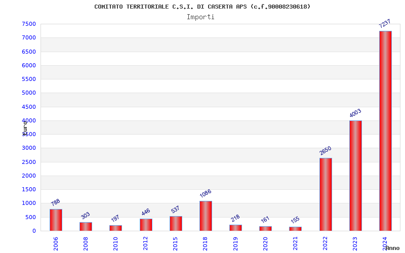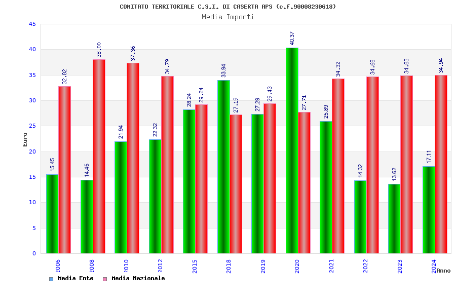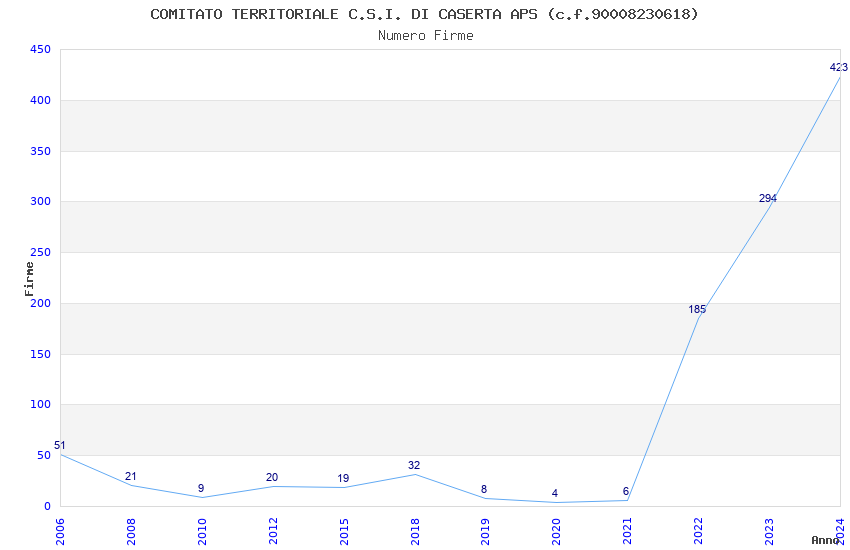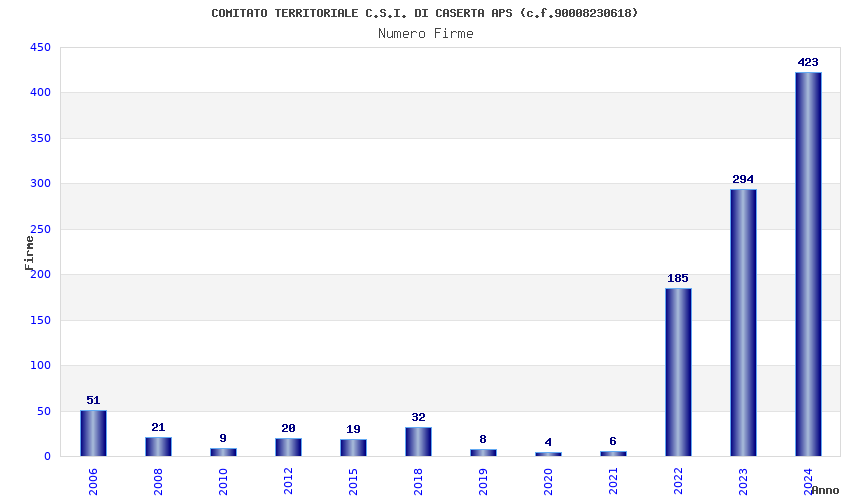 | Anno | Firme | Importi | Media | Naz. | Reg. | Prov. | Comu. |
