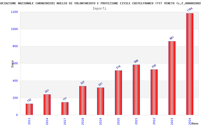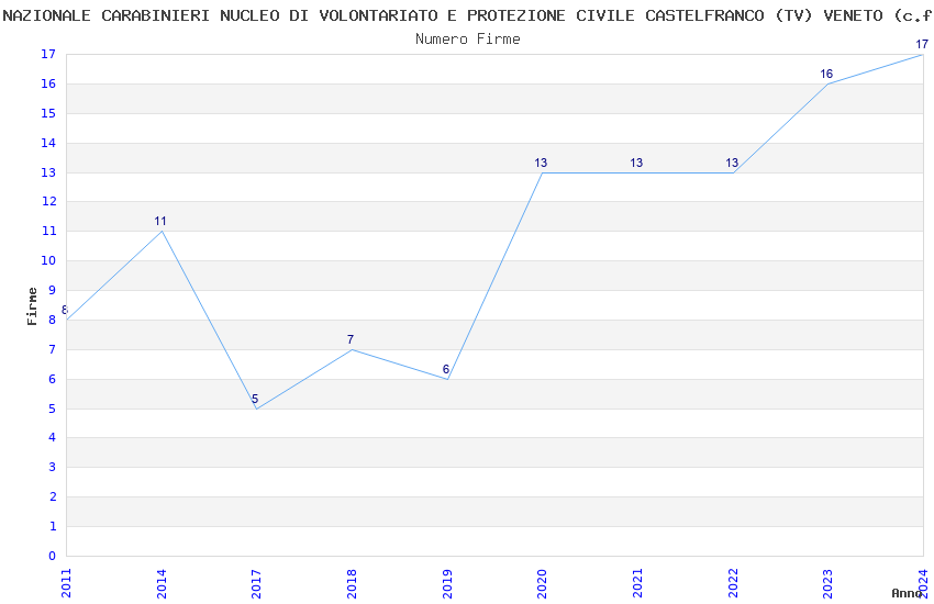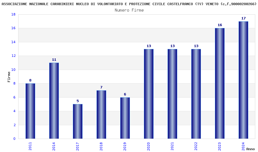 | Anno | Firme | Importi | Media | Naz. | Reg. | Prov. | Comu. |