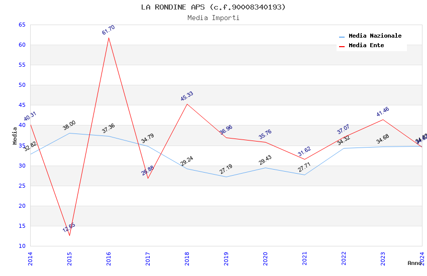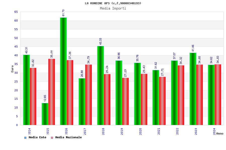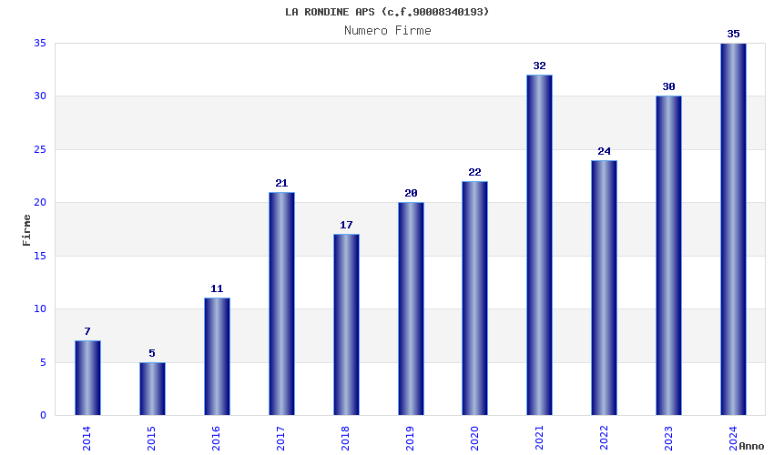 | Anno | Firme | Importi | Media | Naz. | Reg. | Prov. | Comu. |