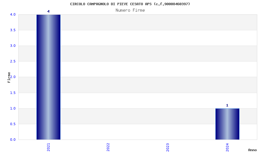 | Anno | Firme | Importi | Media | Naz. | Reg. | Prov. | Comu. |