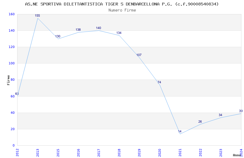 | 2013 | 155 | 3.674,55 | 23,71 | 11.592 | 652 | 107 | 6 |