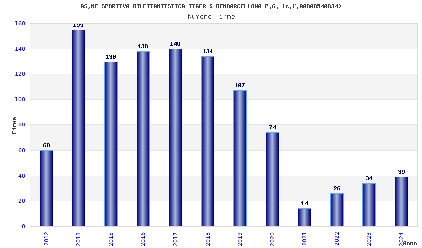 | Anno | Firme | Importi | Media | Naz. | Reg. | Prov. | Comu. |
