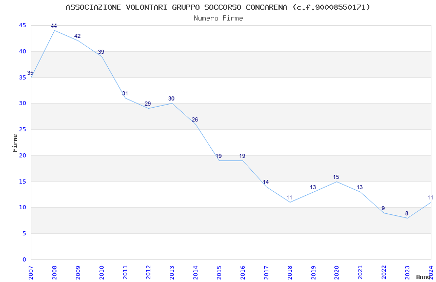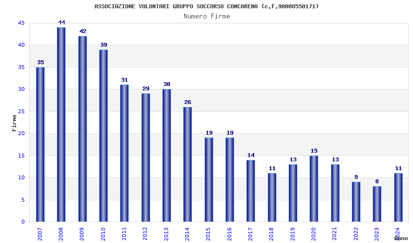 | 2008 | 44 | 781,76 | 17,77 | 21.114 | 4.678 | 609 | 1 |