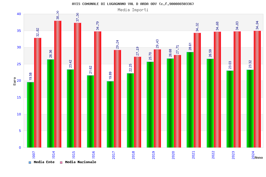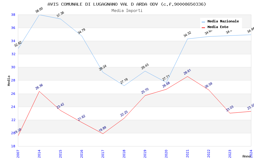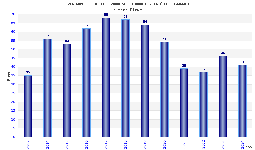 | Anno | Firme | Importi | Media | Naz. | Reg. | Prov. | Comu. |