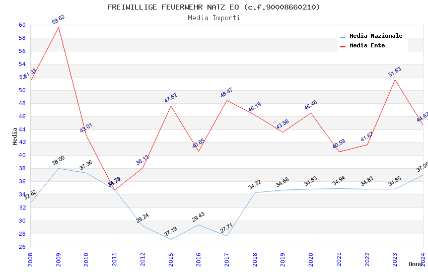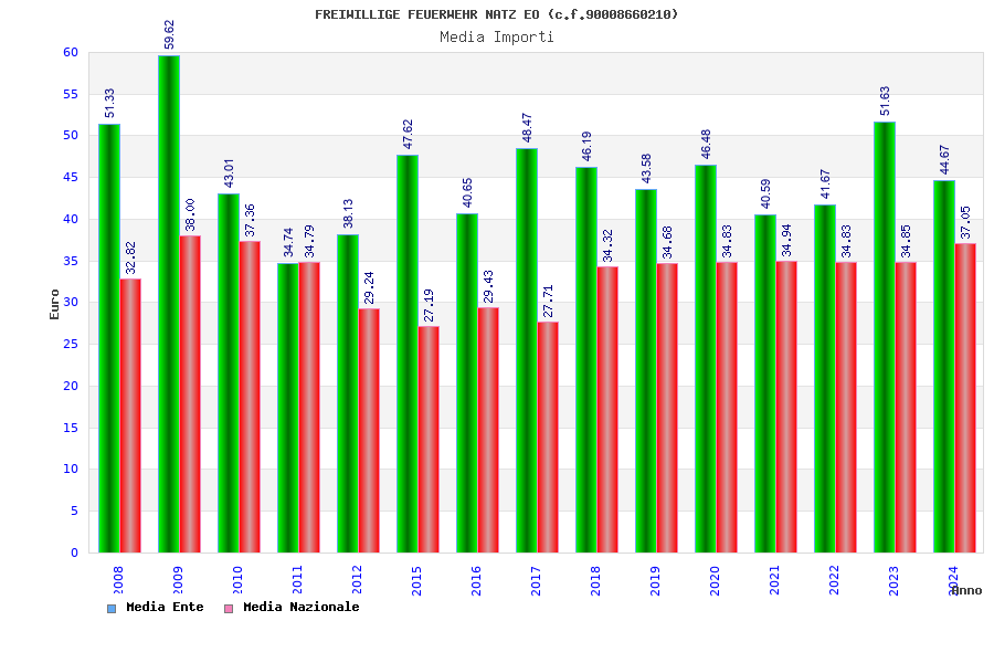 | Anno | Firme | Importi | Media | Naz. | Reg. | Prov. | Comu. |