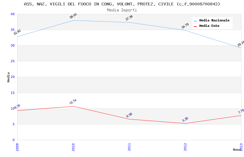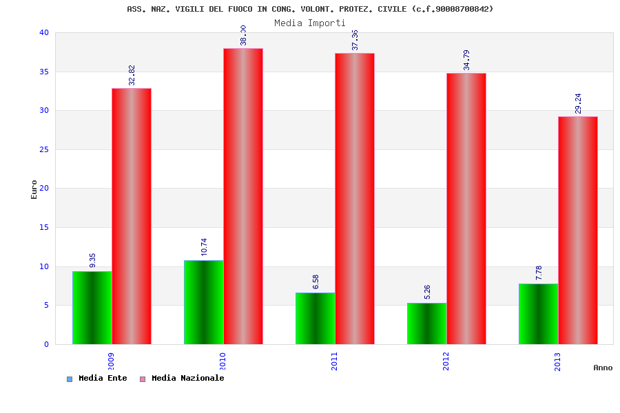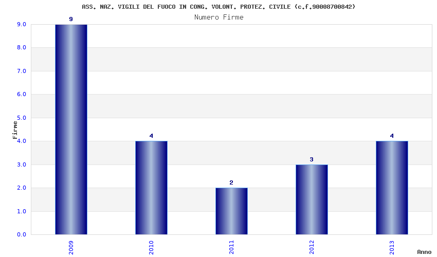 | Anno | Firme | Importi | Media | Naz. | Reg. | Prov. | Comu. |