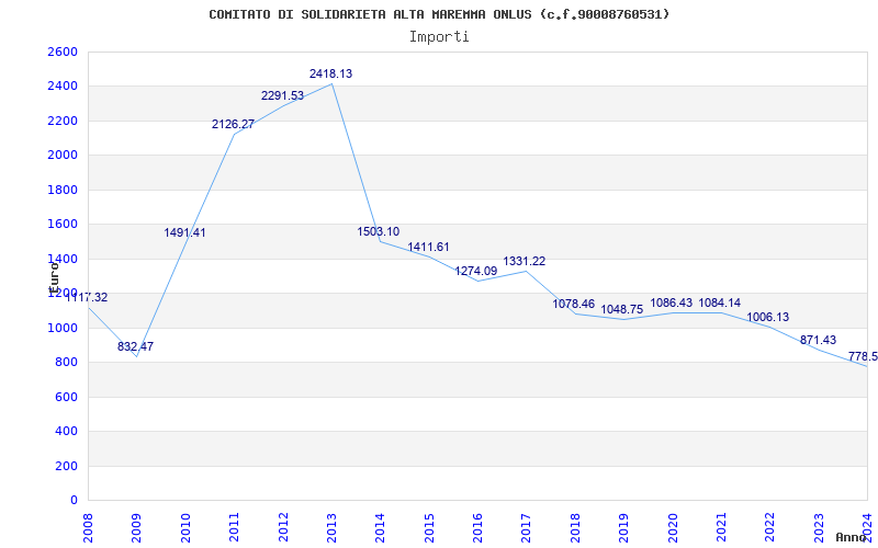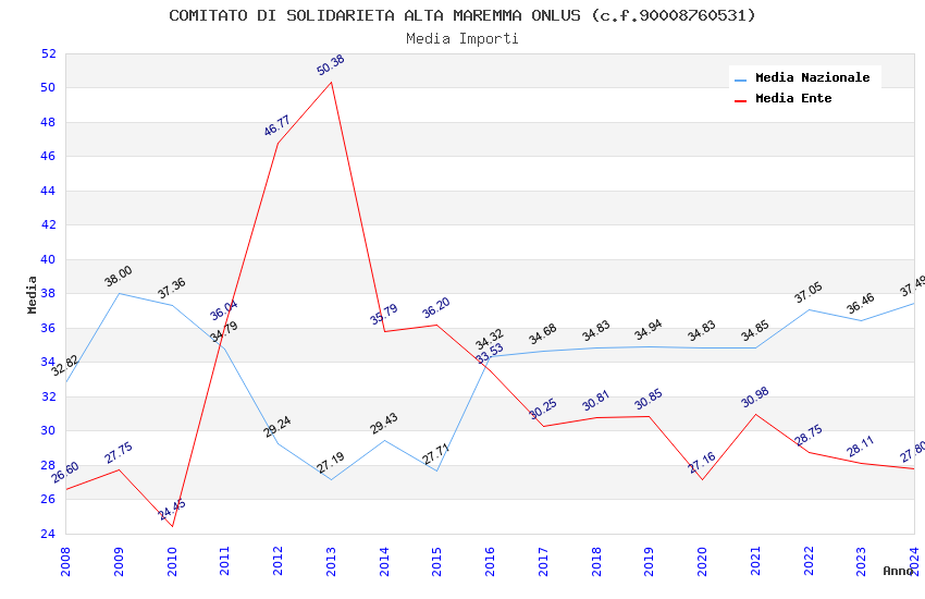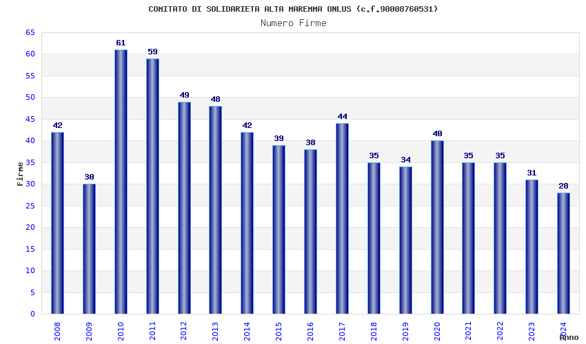 | Anno | Firme | Importi | Media | Naz. | Reg. | Prov. | Comu. |