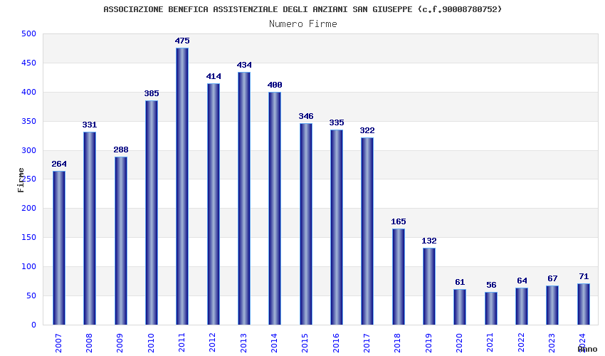 | Anno | Firme | Importi | Media | Naz. | Reg. | Prov. | Comu. |