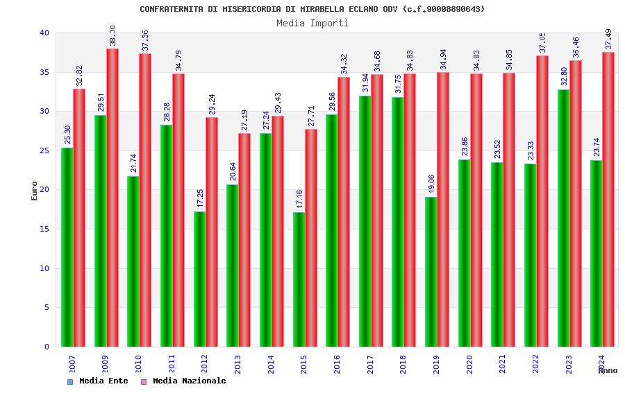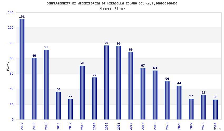 | Anno | Firme | Importi | Media | Naz. | Reg. | Prov. | Comu. |