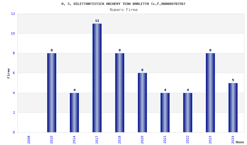 | Anno | Firme | Importi | Media | Naz. | Reg. | Prov. | Comu. |