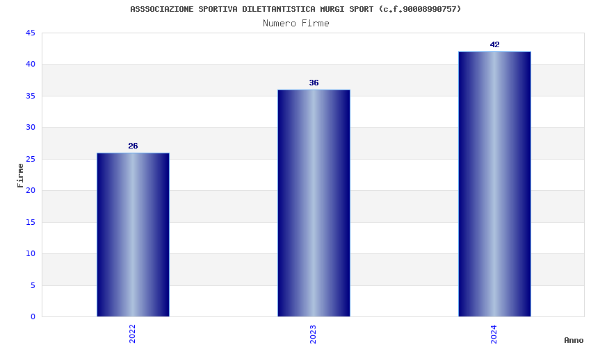 | Anno | Firme | Importi | Media | Naz. | Reg. | Prov. | Comu. |