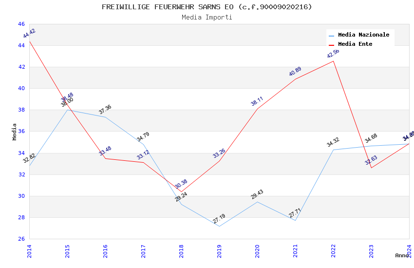 | Anno | Firme | Importi | Media | Naz. | Reg. | Prov. | Comu. |