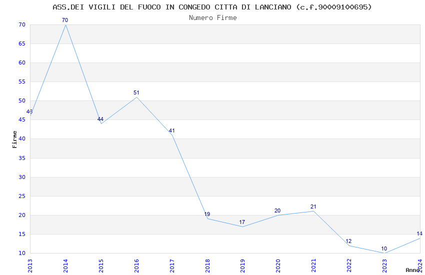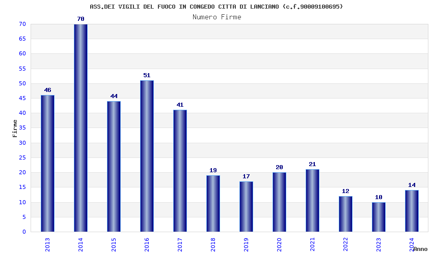 | 2014 | 70 | 1.476,58 | 21,09 | 25.804 | 438 | 125 | 17 |