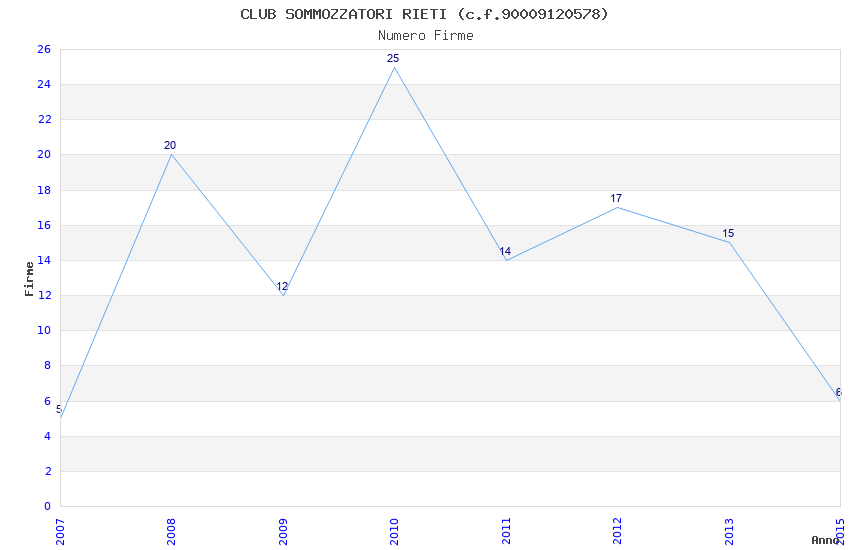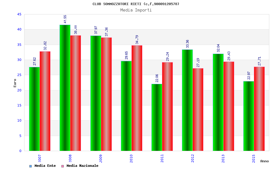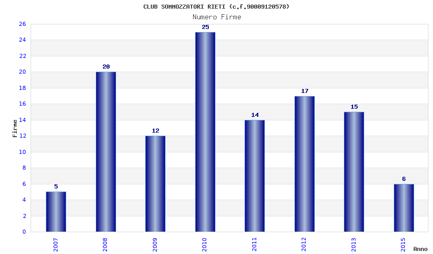 | Anno | Firme | Importi | Media | Naz. | Reg. | Prov. | Comu. |