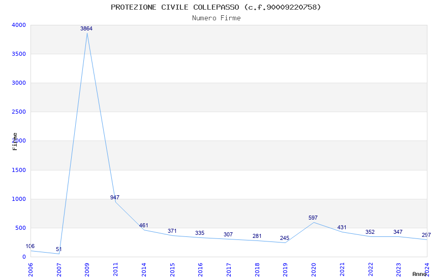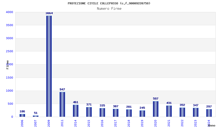| Anno | Firme | Importi | Media | Naz. | Reg. | Prov. | Comu. |