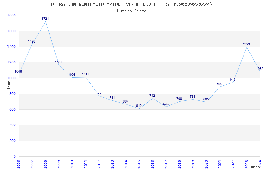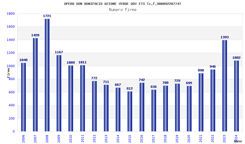 | Anno | Firme | Importi | Media | Naz. | Reg. | Prov. | Comu. |