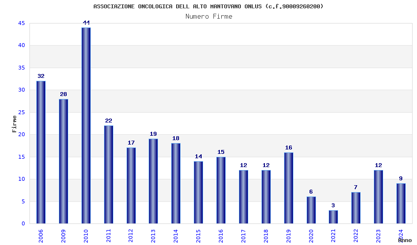 | Anno | Firme | Importi | Media | Naz. | Reg. | Prov. | Comu. |