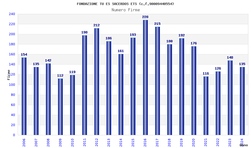 | Anno | Firme | Importi | Media | Naz. | Reg. | Prov. | Comu. |